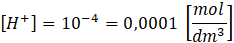Wyznacz wartość stężenia molowego kationów wodorowych występujących w roztworze, którego pH = 4.