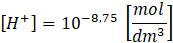 Wyznacz wartość stężenia molowego kationów wodorowych występujących w roztworze, którego pH = 8,75.