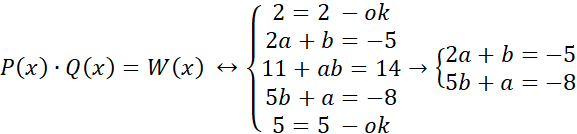 Musisz rozwiązać iloczyn wielomianów Pi Q oraz porównać współczynniki otrzymanego wyniku z współczynnikami wielomianu W.