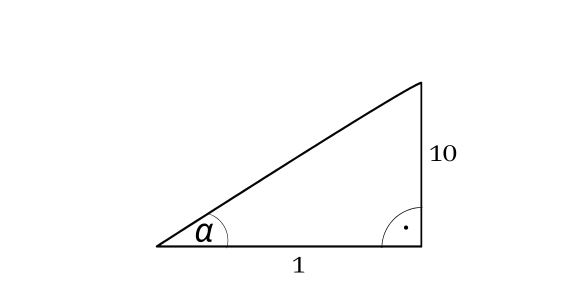 W tym zadaniu musisz narysować trójkąt prostokątny, którego tgα = 10.