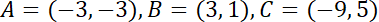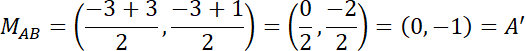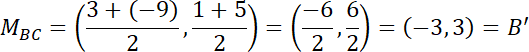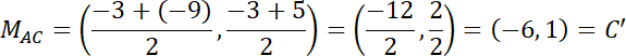 Na początku oblicz współrzędne środków odcinków: AB, BC, AC: