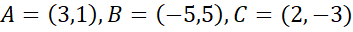 i na tej podstawie wyznacz współrzędne środków odcinków AB, AC i BC.