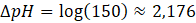 Określ, jak zmalało pH roztworu, jeśli stężenie kationów wodorowych wzrosło 150-krotnie.