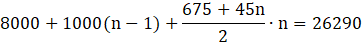 Z racji, że na koniec oszczędzania jego lokata wyniosła 26290 zł, można ułożyć następujące równanie złożone z kwoty początkowej, wpłacanych co roku dodatkowych 1000 zł i odsetek.
