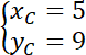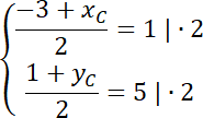 Stwórz układ równań, aby obliczyć współrzędne C: