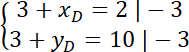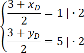 Stwórz układ równań, aby obliczyć współrzędne D: