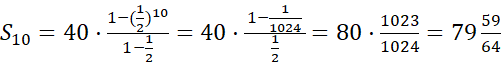 Należy podać sumę pierwszych dziesięciu wyrazów ciągu geometrycznego.