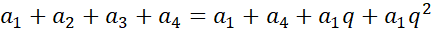 Należy wyznaczyć opisany czterowyrazowy ciąg geometryczny.