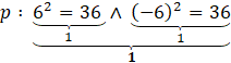 Używając symboli matematycznych zapisz zdanie Kwadrat liczby 6 jest równy 36 i kwadrat liczby (-6) jest równy 36, a następnie oceń jego wartość logiczną.