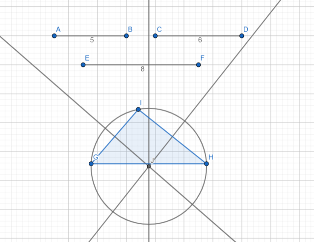 · punkt przecięcia obu łuków (punkt I) będzie trzecim wierzchołkiem trójkąta.