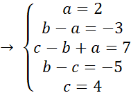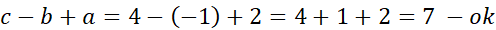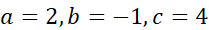 Bezpośrednio możemy odczytać wartości współczynników a i c, wartość b obliczmy z dowolnego równania: