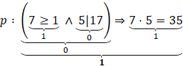 Oceń kolejno wartość logiczną zdań składowych, a następnie zdań złożonych, wiedząc, że koniunkcja jest prawdziwa, gdy oba zdania są prawdziwe, a implikacja jest fałszywa, gdy poprzednik jest prawdziwy, a następnik prawdziwy.