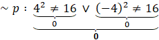 Zauważ, że zdanie złożoną jest koniunkcją dwóch zdań, więc jego zaprzeczenie jest alternatywą zaprzeczeń zdań składowych. Zauważ, że zaprzeczenie jest fałszywe, ponieważ obie równości są sprzeczne.