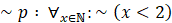Zauważ, że istnieje liczba naturalna spełniająca podaną nierówność (0 i 1), więc zdanie jest prawdziwe. Zgodnie z Prawem de Morgana dla kwantyfikatorów musisz zmienić kwantyfikator szczegółowy na ogólny oraz podać negację podanej formuły.