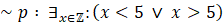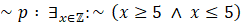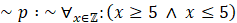 Zauważ, że podane zdanie jest prawdziwe tylko dla wartości 5, więc nie jest spełnione przez wszystkie liczby całkowite. Zgodnie z Prawem de Morgana dla kwantyfikatorów musisz zmienić kwantyfikator ogólny na szczegółowy oraz podać negację podanej formuły. Zaprzeczenie koniunkcji jest alternatywą zaprzeczeń zdań składowych.