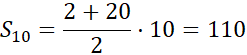 Należy wyznaczyć sumę dziesięciu początkowych wyrazów ciągu arytmetycznego.