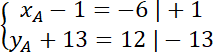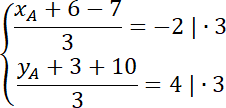 Stwórz układ równań, aby obliczyć współrzędne wierzchołka A: