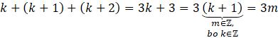 Udowodnij, że liczba 3 jest dzielnikiem sumy trzech kolejnych liczb całkowitych.