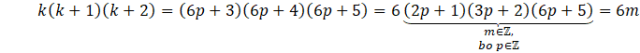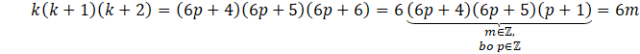 Udowodnij, że liczba 6 jest dzielnikiem iloczynu trzech kolejnych liczb całkowitych.