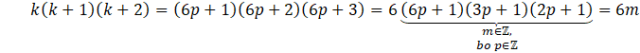 Aby pokazać, że wskazany iloczyn jest podzielny przez 6 musisz przedstawić go w postaci 6m, gdzie m – liczba całkowita. Skorzystaj z twierdzenia pomocniczego (lematu), w którym rozważ sześć przypadków podzielności przez 6 (reszta 0, 1, 2, 3, 4, 5).