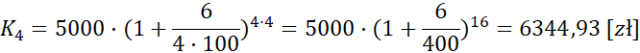 Należy obliczyć kwotę, którą pan Rafał otrzyma po czterech latach, jeżeli kapitalizacja jest kwartalna i nie uwzględniamy podatku.