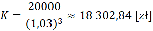 Pomijając podatek od dochodów kapitałowych, należy obliczyć, jaką kwotę trzeba wpłacić na początku lokaty, żeby przy powyższych warunkach po 9 miesiącach otrzymać 20 000 zł.