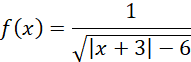 Otrzymana w ten sposób nierówność mówi nam, że wyrażenie po lewej jest mniejsze lub równe 0 dla x pomiędzy -9 i 3 włącznie. Umieśćmy je teraz w mianowniku ułamka oraz pod pierwiastkiem i zapiszmy to jako wzór funkcji f.