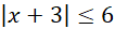 Zauważmy, że na osi liczbowej dokładnie na środku pomiędzy liczbami -9 i 3 znajduje się liczba -3 oraz jej odległość do tych liczb wynosi 6 jednostek. Wykorzystując graficzną interpretację wartości bezwzględnej skonstruujmy nierówność spełnioną przez liczby z przedziału pomiędzy -9 i 3 włącznie: