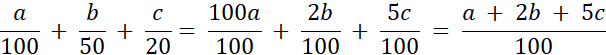 Zapisano wszystkie wartości w postaci ułamka o mianowniku 100, aby można je było uporządkować.