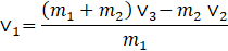Dokonaj przekształceń równania opisującego zderzenie niesprężyste, aby wyznaczyć szukane wielkości.