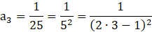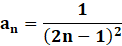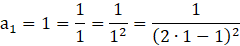 Można zauważyć pewną zależność, że każdy kolejny wyraz ciągu różni się od poprzedniego jedynie mianownikiem. Widać, że każdy z nich jest kolejną liczbą nieparzystą, którą można spierwiastkować pierwiastkiem kwadratowym, więc mianownik na pewno będzie kwadratem jakiegoś wyrażenia. Żeby jeszcze dodatkowo spełniał warunki kwadratu kolejnych liczb nieparzystych, to musisz dodać pewną zależność, która to reguluje, a mianowicie: