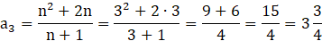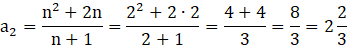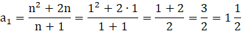 Można zauważyć pewną zależność, że każdy kolejna liczba całkowita w danym wyrazie jest kolejnym numerem wyrazu ciągu, tak samo, jak licznik ułamka, natomiast mianownik jest liczbą o 1 większą od numeru naszego wyrazu.