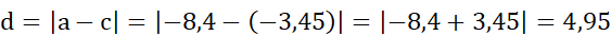 W tym zadaniu musisz wyznaczyć na osi liczbowej liczbę c równoodległą od liczb a i b oraz podać, jaka jest odległość d liczby c od liczb a i b.