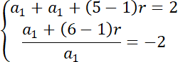 wiedząc, że suma wyrazów pierwszego i piątego jest równa 2, a iloraz szóstego i pierwszego jest równy .