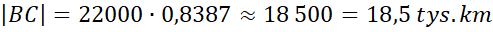 Oblicz odległość między satelitami B i C, jeśli po tej samej orbicie okołoziemskiej o promieniu 11 tys. km krążą trzy satelity: A, B i C a kąt BAC ma miarę