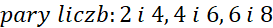 Ułożono nierówność na podstawie tekstu polecenia, obliczono ją i wyznaczono pary liczb spełniające warunki zadania.