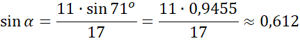 to kąty odpowiednio przeciwległe do tych boków i na tej podstawie wyznacz sinus podanego kąta.