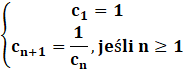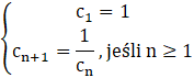 W tym zadaniu musisz wyznaczyć wzór rekurencyjny ciągu, czyli układ równań, gdzie pierwsze równanie to wartość pierwszego wyrazu ciągu, a drugie to wzór na drugi wyraz.