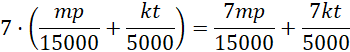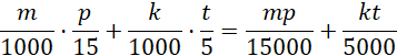 Wiemy, że owczarek niemiecki zjada m g karmy dziennie, a kot zjada k g karmy dziennie. Wiadomo również, że cena psiej karmy jest równa p zł za 15 kg, a kociej t zł za 5 kg. Wyznacz, ile kosztuje tygodniowe wyżywienie obydwu zwierząt.