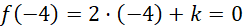 Podaj taką wartość k, dla której -4 będzie miejscem zerowym funkcji