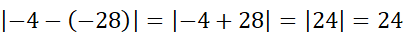 W tym zadaniu musisz zapisać odległość na osi liczbowej między danymi liczbami, za pomocą znaku wartości bezwzględnej, a następnie obliczyć tę odległość. –4 i –28.