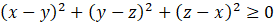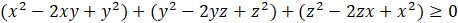 Lewa strona równania to suma trzech kwadratów różnic. Kwadraty te są nie ujemne, zatem lewa strona również jest nieujemna.