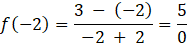 Liczba -2 nie należy do dziedziny funkcji, ponieważ po podstawieniu uzyskujemy 0 w mianowniku.