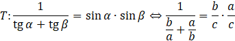 Udowodnij, że iloczyn sinusów kątów ostrych w trójkącie prostokątnym równa się odwrotności sumy tangensów tychże kątów.