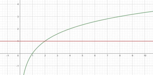 jest większa od 1, jeśli do wykresu funkcji logarytmicznej