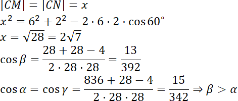 W tym zadaniu należy najpierw zauważyć prostą równość a następnie użyć dwa razy twierdzenia cosinusów.