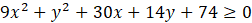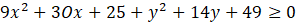 Masz wykazać, że nierówność 9𝑥2 + 𝑦2 + 30𝑥 + 14𝑦 + 74 ⩾ 0 jest prawdziwa.