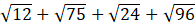 √12 + √75 + √24 + √96 = 2√3 + 5√3 + 2√6 + 4√6 = 7√3 + 6√6