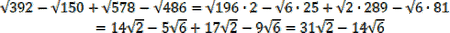 Najpierw wyłącz czynnik przed znak pierwiastka. Zapisz liczbę pod pierwiastkiem jako iloczyn dwóch czynników tak, żeby co najmniej z jednego z nich można było obliczyć pierwiastek, który jest liczba wymierną. Rozbij mnożenie pod pierwiastkiem na mnożenie dwóch pierwiastków. Tam gdzie jest to możliwe oblicz pierwiastek, tam gdzie nie jest to możliwe przepisz pierwiastek. Następnie oblicz wartość wyrażenia.