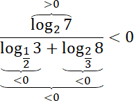 Określ znak każdej z liczb w podanym działaniu. Zauważ, że jeśli podstawa logarytmu